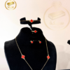 تم تصميم هذا الطقم باستخدام خامات عالية الجودة مثل الذهب المطلي عيار 18 مع طبقة من الطلاء الأسود اللامع الذي يُضفي على التصميم طابعًا فخمًا وخالدًا. يمكن ارتداء الطقم بالكامل في المناسبات الخاصة أو تنسيق كل قطعة على حدة لإطلالة يومية راقية.